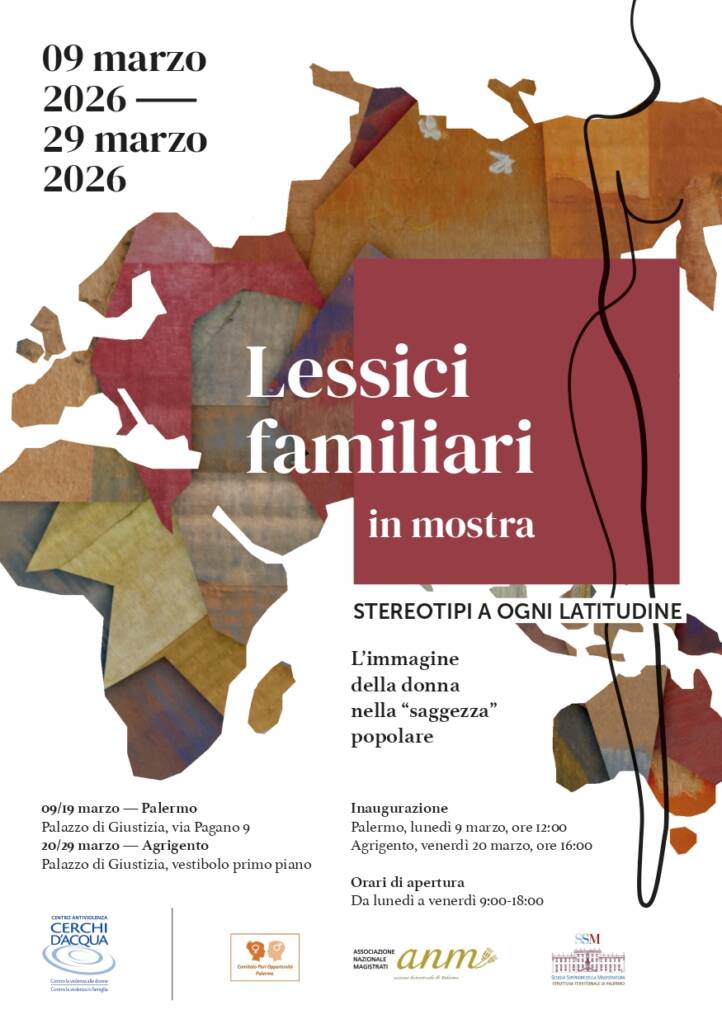 Gli eventi sono promossi dal Comitato Pari Opportunità presso il Consiglio Giudiziario della Corte d’Appello di Palermo, dall’Associazione Nazionale Magistrati ANM, sezione distrettuale di Palermo, e dalla Scuola superiore della Magistratura.