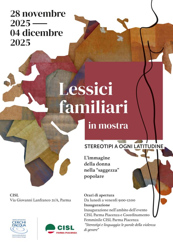 - Dal 28 novembre al 4 dicembre 2025 ci sarà la prossima tappa della mostra itinerante “Lessici familiari-Stereotipi ad ogni latitudine” a Parma. L’evento è organizzato dalla CISL Parma Piacenza
