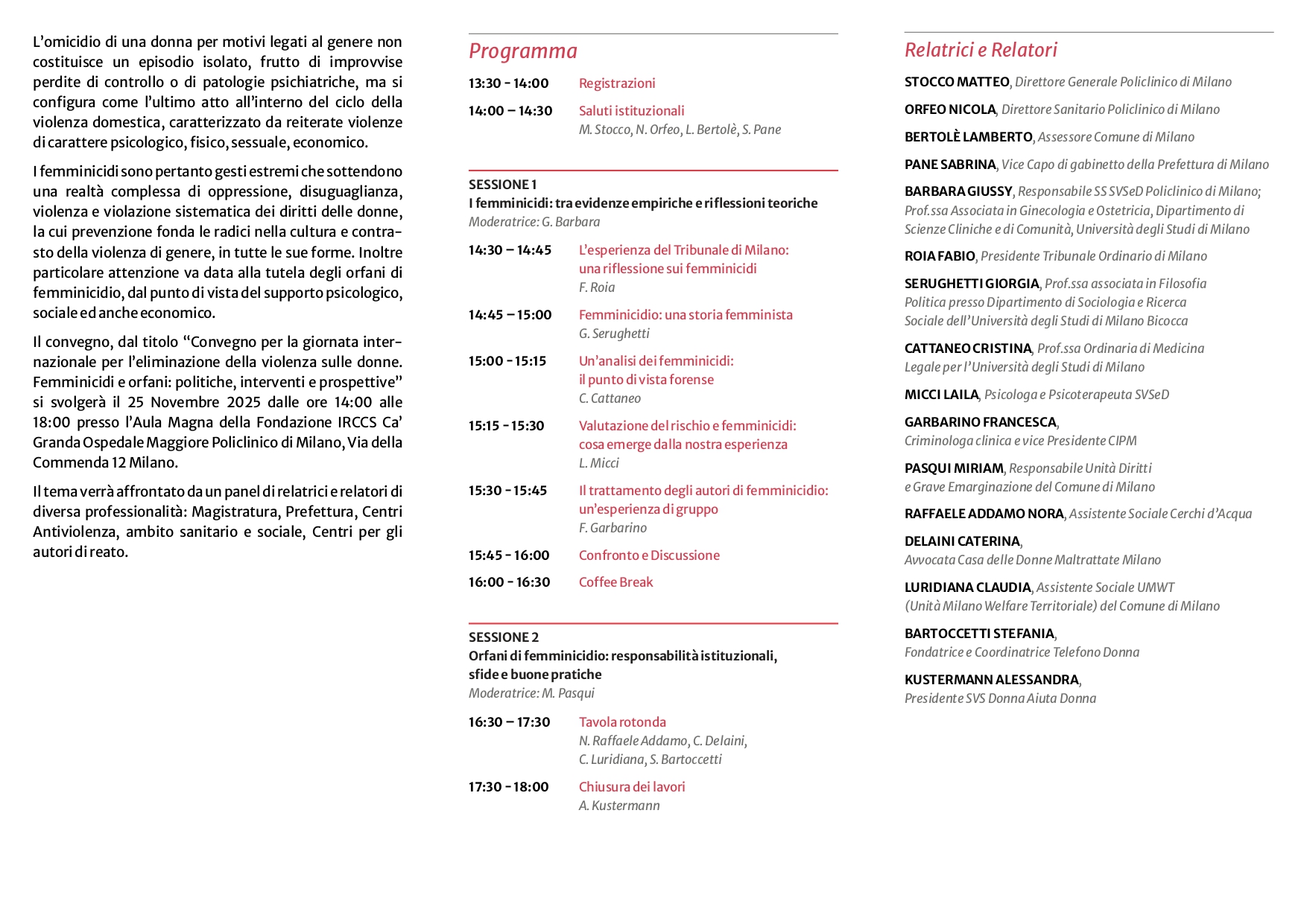 - 25 NOVEMBRE 2025 Cerchi partecipa a Convegno per la Giornata internazionale per l’eliminazione della violenza sulle donne presso il Policlinico di Milano.